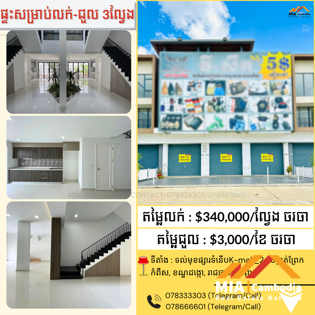 ✅ ផ្ទះសម្រាប់លក់-ជួល 3ល្វែង