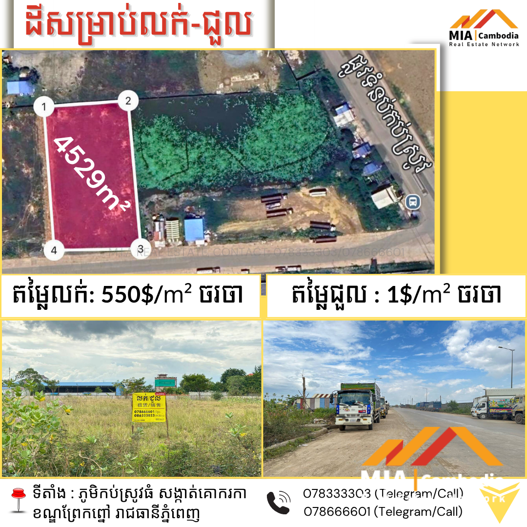 – តម្លៃលក់: 550$/m² ចរចា