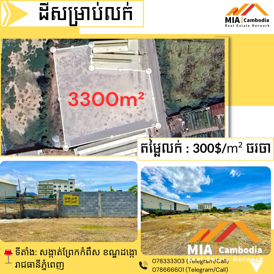 – ទំហំដី : 3300m² (ក្បាលដី35m)